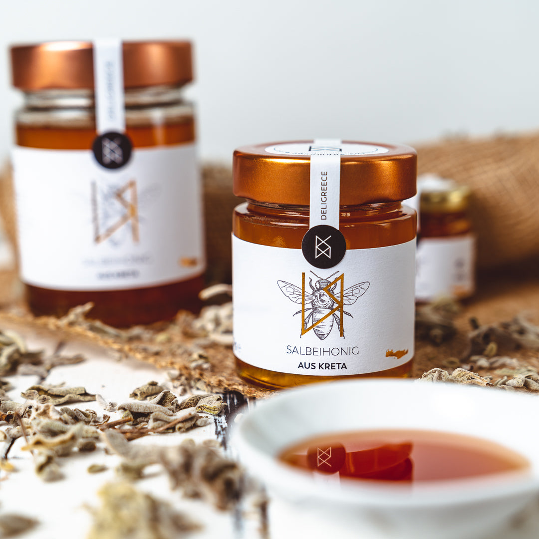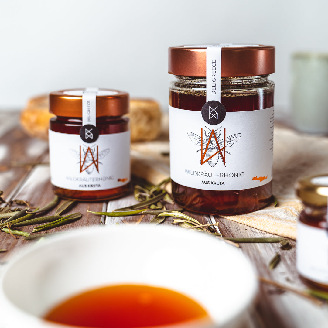 in der unberührten Natur ist das Meer gesäumt von Bergen. Sie liefern Grund und Boden für die reichste Flora und Fauna im gesamten Mittelmeerraum. Im Frühling, Sommer und Herbst blühen dort reichhaltige Wildkräuter wie Heide, Johannisbrotbaum, Salbei, Thymian, Oregano oder Bohnenkraut. Die Blüten locken fleißige Bienen an, die aus Nektar und Pollen in mühsamer Kleinarbeit Honig herstellen.