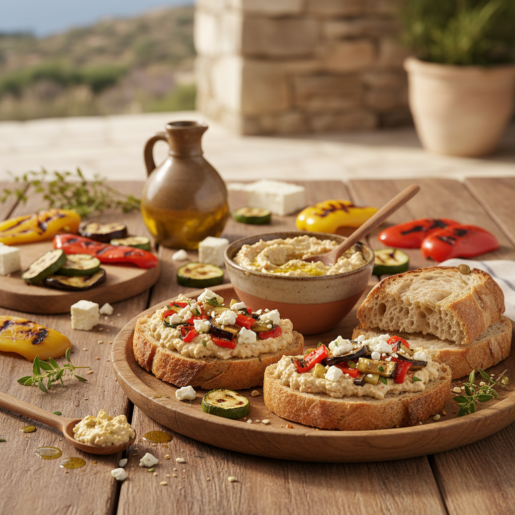 Unsere herzhaften Gemüse-Aufstriche mit Feta-Käse holen dir die griechische Meze-Tafel direkt aufs Brot. Gegrilltes Gemüse wie Aubergine, Zucchini und Paprika wird mit cremigem Feta-Käse und extra nativem Olivenöl zu einer streichzarten, aromatischen Mischung verbunden, die nach Sommer, Grillabend und Taverne schmeckt. Ob auf frischem Brot oder Pita, in Sandwiches und Wraps, als Dip für Gemüse oder als bunte Komponente auf Vorspeisenplatten – ein Löffel genügt, um einfachen Broten und Tellern eine vollwertige, mediterrane Komponente zu geben, ohne dass du selbst Gemüse schneiden, grillen und abschmecken musst.