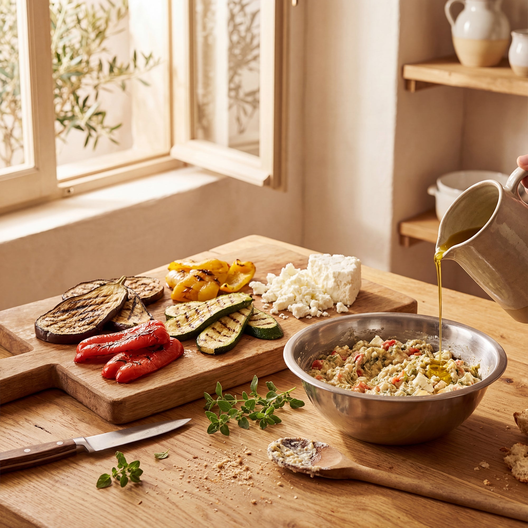 - Cremiger Aufstrich aus Aubergine, Feta und Olivenöl