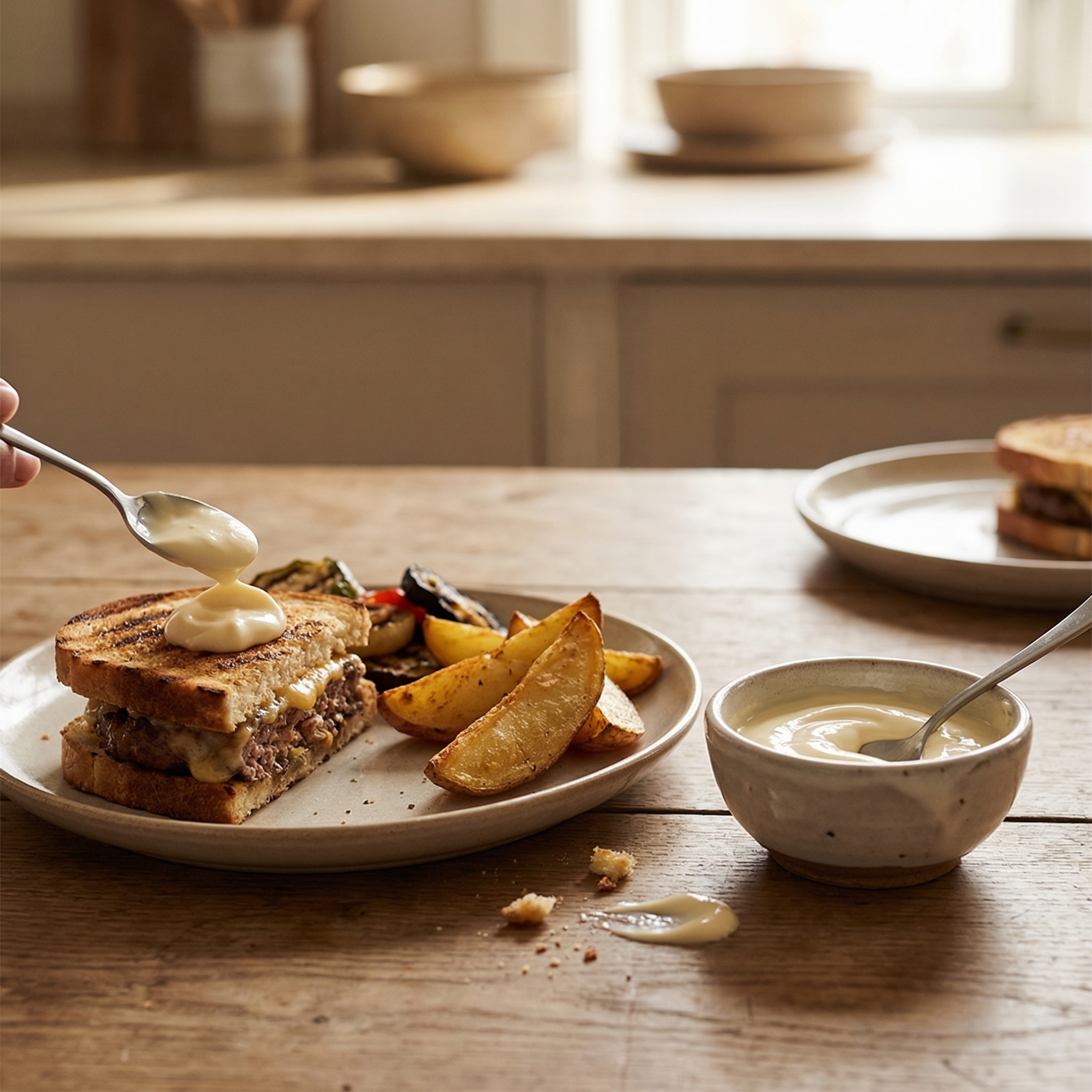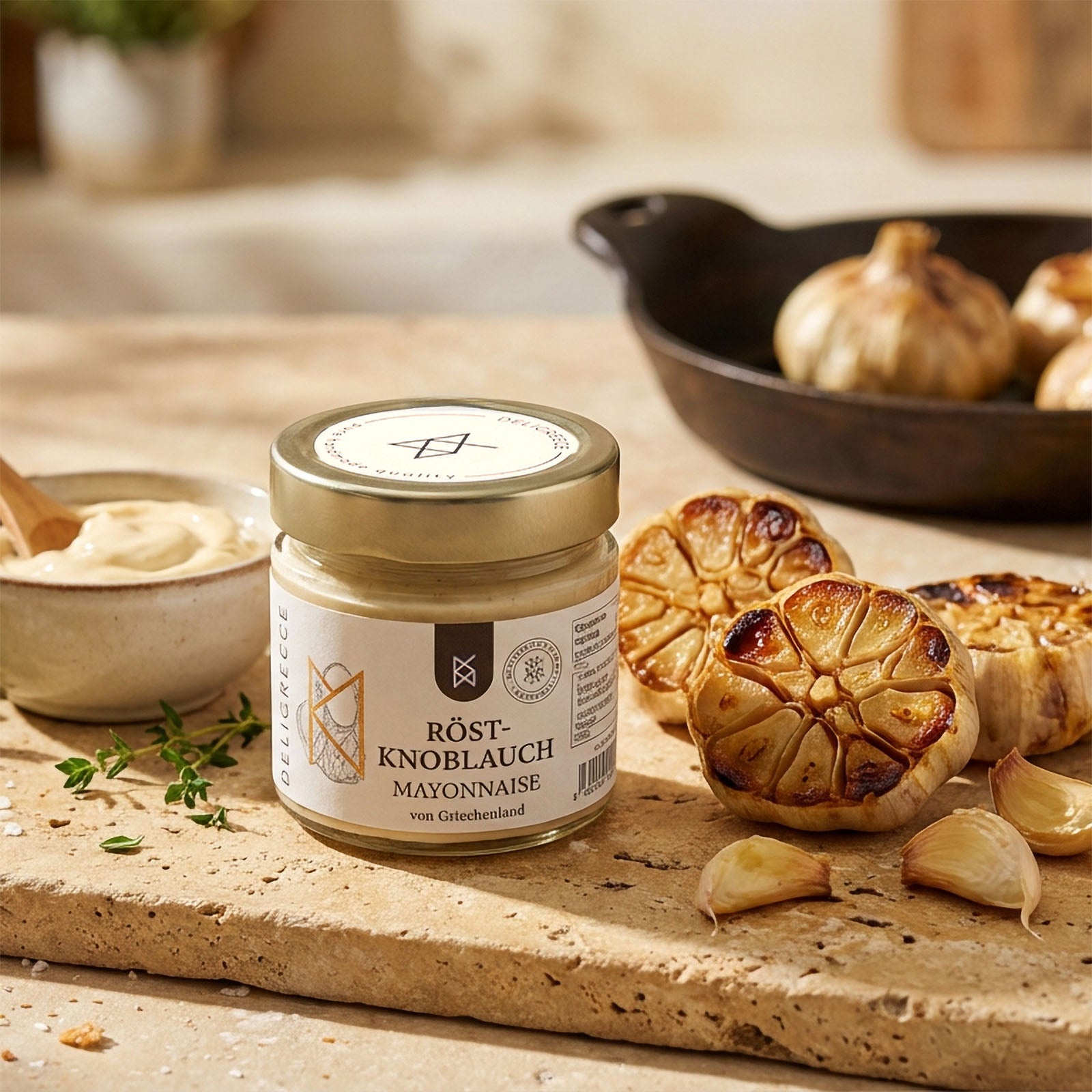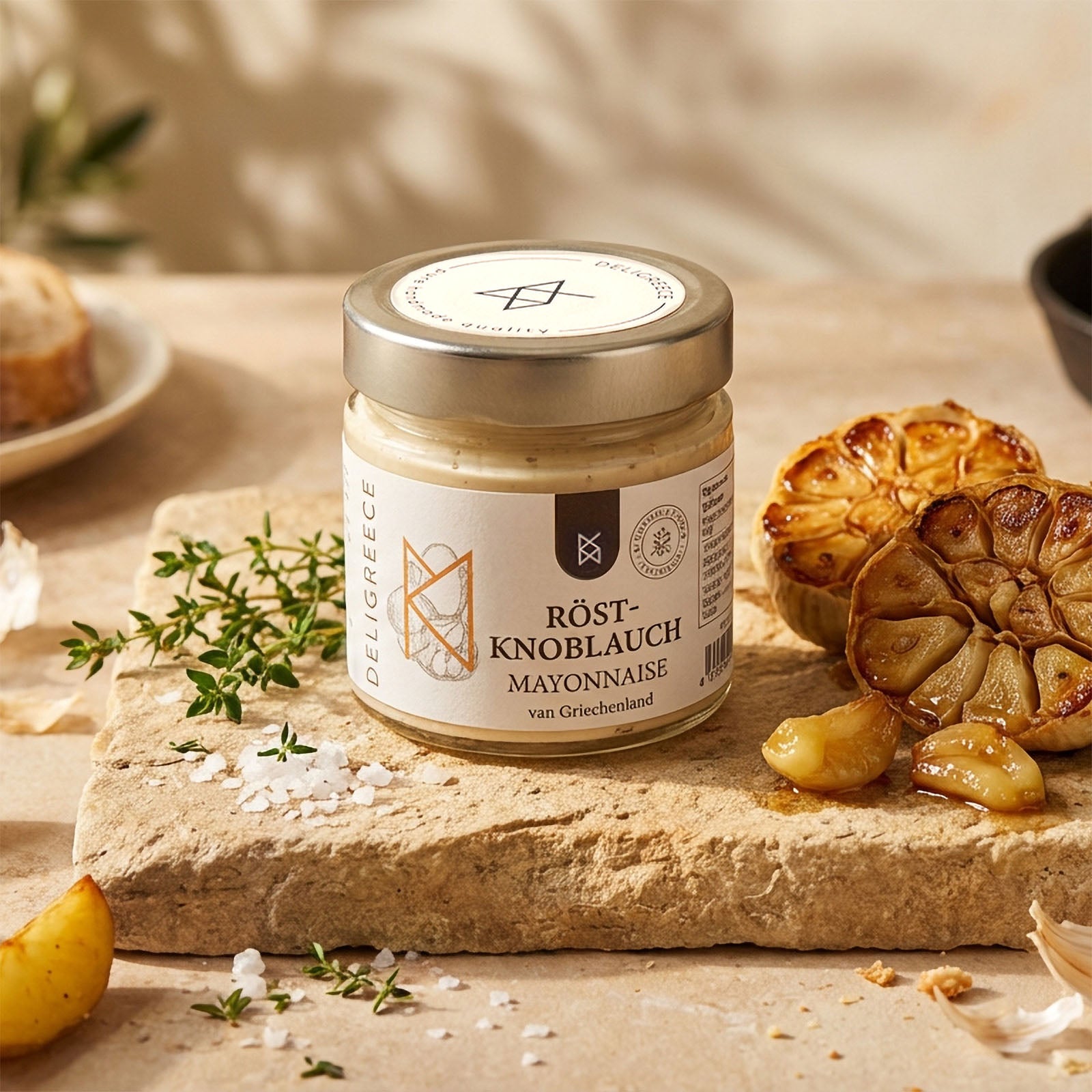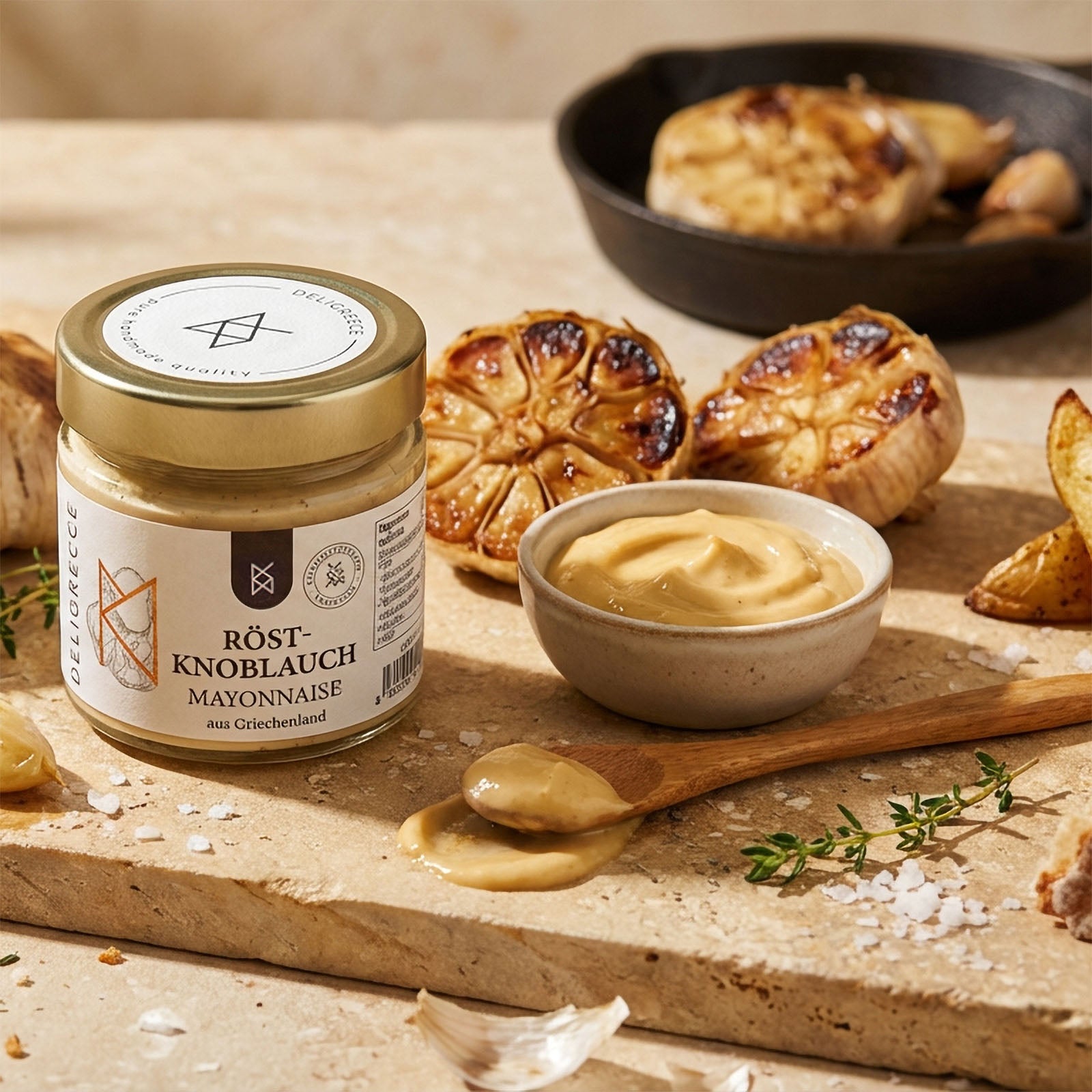 • Röstknoblauch-Mayonnaise – tief aromatisch durch langsam gerösteten Knoblauch